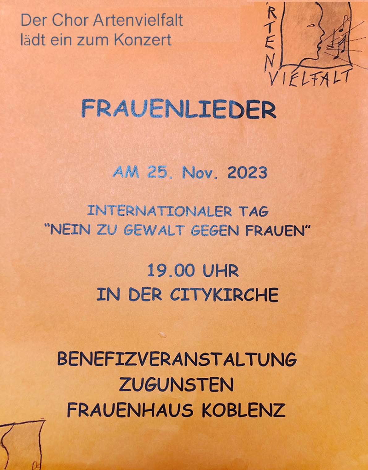 Am 25.11. um 19 Uhr hört ihr Frauenlieder zum Anlass des Internationalen Tages gegen Gewalt an Frauen.